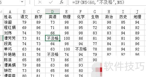 若L2小于60则显示不及格,否则显示L2的值。