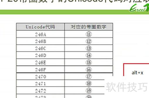 带圈数字10以上需通过Unicode转码输入,方法为:在字符位置输入对应编码(11至20的编码见下表),输入完成后按下Alt+X键,编码即自动变为带圈数字。此法简便快捷,适用于多种文本编辑环境。