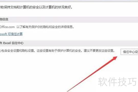 在右侧新开窗口中点击信任中心设置按钮。
