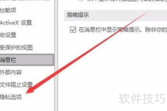 在信任中心窗口左侧,选择隐私选项菜单。