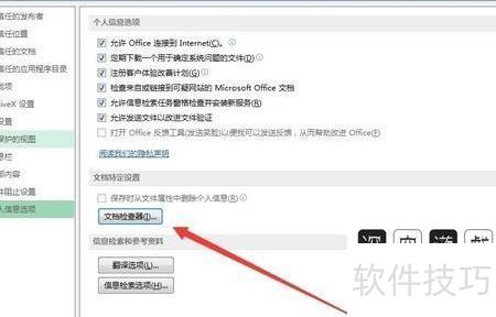 在右侧新开窗口中,点击文档检查器按钮。