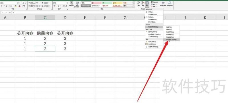 在下拉菜单中找到隐藏与取消隐藏按钮,点击即可操作。