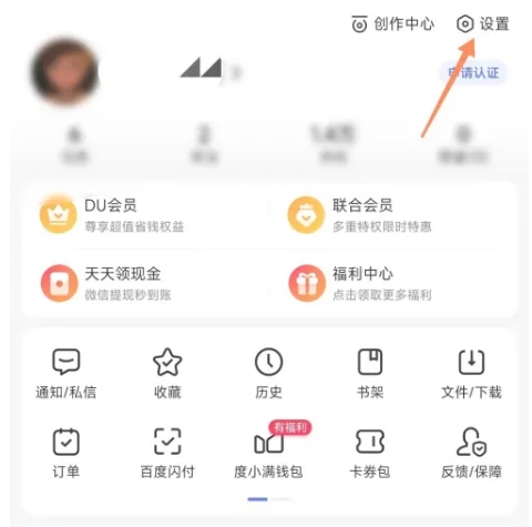 1、点击进入设置:打开手机百度App,在页面上方找到【设置】按钮并点击进入,开启操作第一步。
