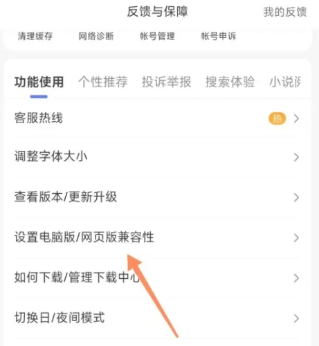 3、点击设置选项:在页面里点击【设置电脑版/网页版兼容性】,尝试开启相关功能设置。