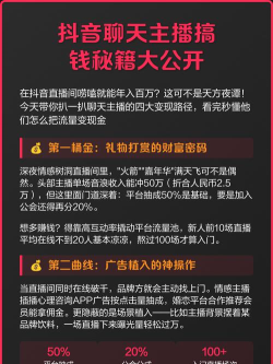 2、多种变现方式,总有一款适合你有了粉丝基础,接下来,就是赚钱了,抖音的赚钱方式,其实很多,比如,你可以接广告,也就是商单,品牌方会找你,推广他们的产品,你按照要求,拍摄视频即可,另外,你还可以直播带货,这是目前,非常主流的变现方式,在直播间里,展示商品,讲解优点,引导粉丝购买,你就能获得佣金,当然,还有知识付费,如果你有专业技能,可以开设课程,或者提供咨询,把知识变成钱。