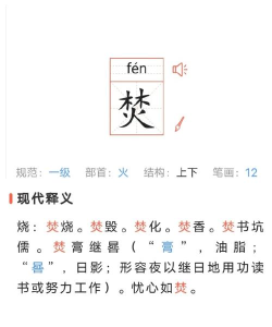 4、如何轻松记住读音有个简单的方法,可以联想“尽”字,它们的读音完全相同,而且,“尽”有完结之意,与“烬”作为残余的意思,在逻辑上也能关联起来,多读几遍,自然就熟了。