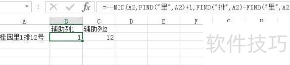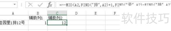 若数据位于A列,增设两辅助列分别提取排与号内容。