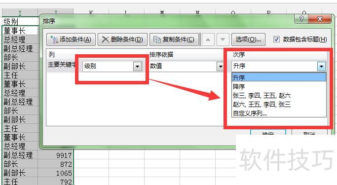 在Excel中选中需排序的区域,点击排序中的自定义排序,在弹出窗口中设置排序关键字和依据,于次序下拉菜单中选择自定义序列,最后确认完成操作。