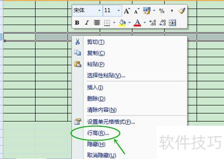 先选中目标行,右键点击,从菜单中选择行高进行调整。
