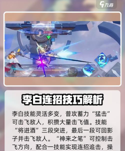 1、技能机制是核心,理解透才能连招顺李白的技能,看似简单,实则精妙,一技能有两段位移,还能回到原点,这是李白秀操作的关键,二技能画个圈,能躲避所有伤害,用好就是无敌,大招需要解锁,普攻或一技能命中,四次就能激活,所以,刷野清线时,记得多普攻,攒好剑气,团战才能随时开大。