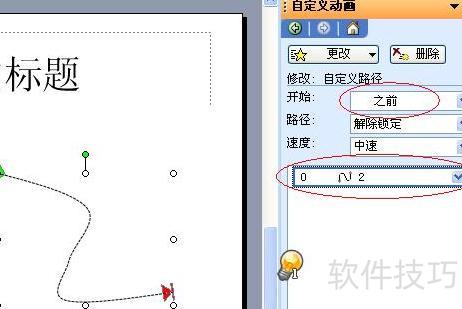 选择自定义动作路径,将右侧开始选项设为之前,使对象按设定路径从无到有自然进入幻灯片。