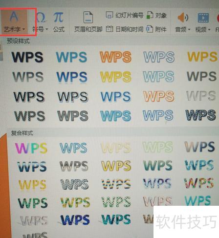 在文本框中设置字体后,点击插入选择艺术字,并挑选喜欢的艺术字体。