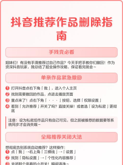 3、删除作品的注意事项,避免误操作在删除作品之前,有几点需要特别注意,删除作品后,该作品获得的点赞、评论和分享,都会一并消失,而且无法找回,所以,如果你有特别珍视的数据,删除前要想清楚,如果作品参加了话题挑战,或者被他人收藏,删除后,别人就看不到了,另外,删除作品不会影响,你账号的其他功能,比如粉丝数、关注列表等,记得定期清理,这样能让你的主页,保持新鲜和整洁。