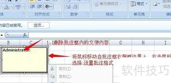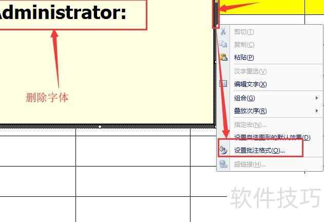 删除批注中的文字,右键点击批注框边缘,选择设置批注格式。
