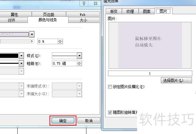 打开填充效果窗口,选择图片选项,浏览并选取本地图片文件。