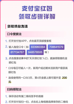 接着,你会看到各种红包,比如扫码领,或者口令领,我们重点看口令红包,通常会有明显提示,比如“输入口令领红包”,或者朋友分享给你时,链接里就包含了,你只需要点击那个链接,支付宝会自动跳转,直达领取页面,非常方便。