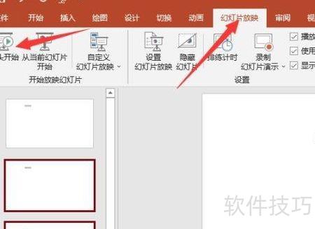 点击幻灯片放映,选择从头或当前页开始播放,即可按预设时间自动播放幻灯片。