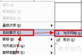 此时需点击图片,再选择绘图功能(若无此工具,可从菜单栏视图→工具栏→绘图中调出),然后选择自动对齐中的对齐网格选项。