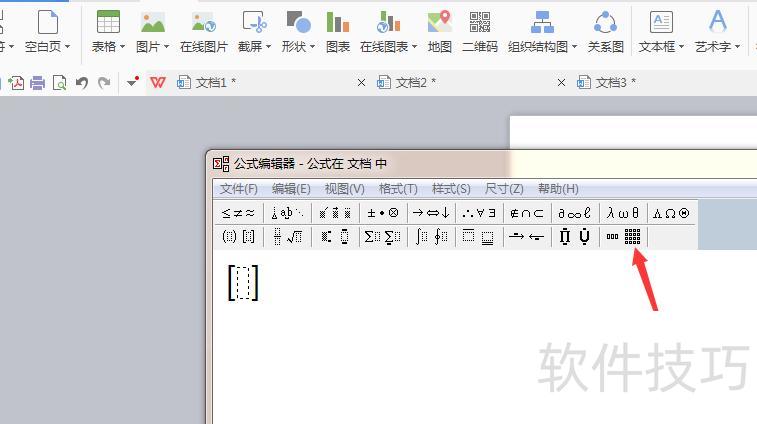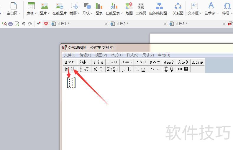 点击编辑框左上角目标矩阵图像的外边框,即可插入所需括号。