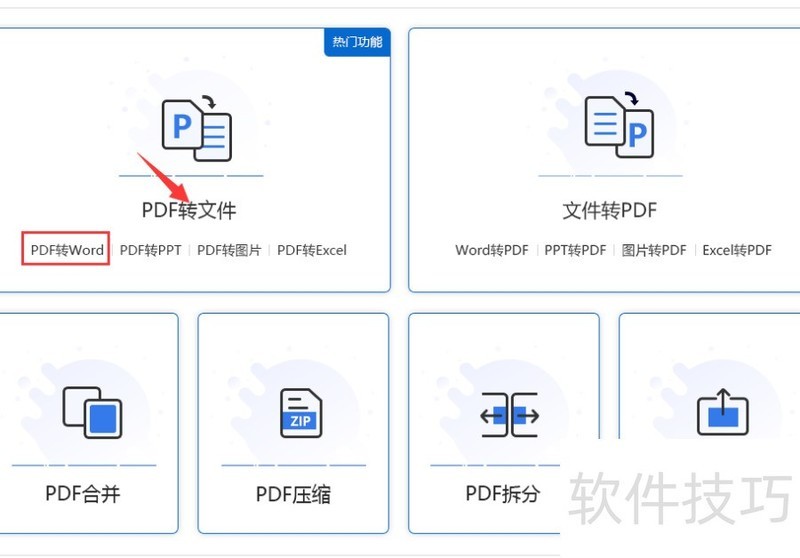 打开软件,选择PDF转文件,再点击PDF转Word功能。