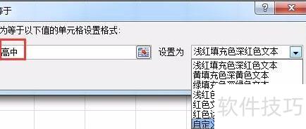 在格式设置中输入相应值(如高中),并在设置为下拉菜单中选择自定义格式,操作所示。