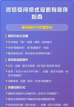 关闭微信夜间模式,并不复杂,多数时候,通过应用内设置,或调整系统主题,就能轻松搞定,保持微信更新,注意手机系统兼容性,就能避免,大部分相关问题,希望这些方法,能帮到你,让你享受,更清晰舒适的聊天体验。