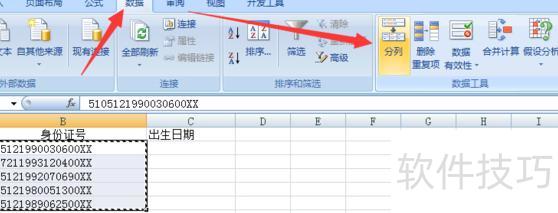 第二步:在数据菜单中点击分列功能。