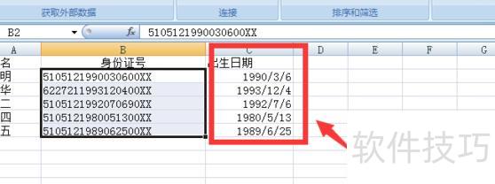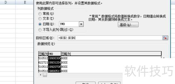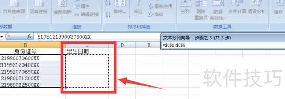 第四步:点击数据预览下方标尺,将身份证号码分三段,中间为出生年月,再点下一步。