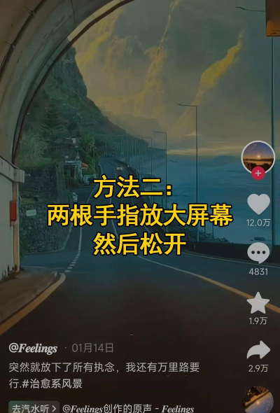 方法其实很简单,打开抖音App,然后,找到你想看的视频,接着,在播放界面,用双指,在屏幕中间,同时向外滑动,就像放大照片一样,这时,你会看到,所有按钮都隐藏了,视频画面变纯净,这就进入清屏模式了。