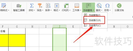 步骤2:点击菜单栏,注意选项,用于固定行。