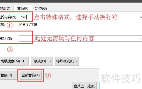 在开始菜单中点击显示/隐藏编辑标记,并选择显示段落标记,可发现空白页由分页符引起。此时按下Ctrl+H打开查找与替换对话框,在查找内容栏中点击下方的特殊格式,选择手动分页符(对应代码为^m),而替换为栏保持空白,随后点击全部替换,即可一次性删除所有因分页符产生的空白页。对于另一份文档中大量存在的空白页,经检查是由连续回车产生的段落标记所致,若逐个使用退格键删除将极为繁琐。此时同样按下Ctrl+H调出替换窗口,将光标置于查找内容,点击特殊格式,选择段落标记(对应代码为^p),替换为栏仍不输入任何内容,再点击全部替换,系统便会自动清除所有由回车符形成的空行与空白页,操作高效便捷,显著提升文档整理效率。