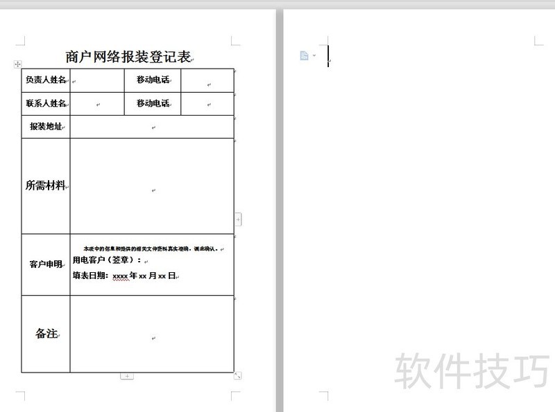 在编辑Word文档时,常会遇到文档末尾出现无法删除的空白页。例如,一份商户网络报装登记表中,第一页内容正常,但其后却多出一页空白,按退格键无效。此时,只需选中文档中的表格,适当调整其行高或大小,使其整体布局适应页面,空白页便会自动消失。对于包含多个空白页的文档,同样可通过调整表格、段落或分页符设置,快速消除多余空白页,使文档排版更紧凑整洁。
