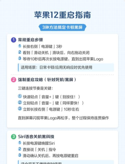 苹果手机的方法,稍微复杂一点,但也很简单,对于没有Home键的全面屏iPhone,比如iPhone X及更新机型,你需要先快速按一下音量加键,然后,快速松开,接着,快速按一下音量减键,也松开,长按侧边的电源键,一直按住,直到屏幕上出现苹果logo,再松开手,对于有Home键的老款iPhone,比如iPhone 8以前,方法更直接,同时按住Home键和电源键,大约10秒,看到苹果logo出现就行。