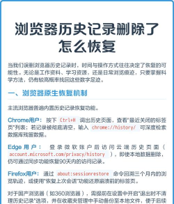 很多浏览器,其实都有类似“回收站”的功能,比如,一些浏览器在清除历史记录时,会提供“仅清除最近记录”的选项,而更早的记录可能还在,你可以打开浏览器的设置菜单,仔细找找“历史记录”或“隐私设置”选项,看看有没有“恢复已删除记录”或“查看所有历史”的入口。