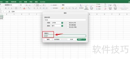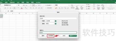 在Excel中,打开查找与替换功能,将1234替换为4321,点击全部替换即可完成操作。