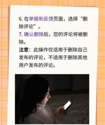 找到目标评论后,用手指,长按那条评论,大约两秒钟,屏幕会弹出一个菜单,这个菜单里,有几个选项,比如“回复”、“复制”、“删除”等,当然,我们需要的,是“删除”这个功能。