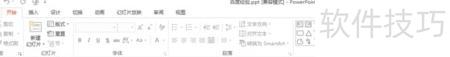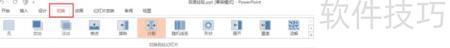 所示为Microsoft Office PowerPoint 2013的工具栏,主要使用切换和幻灯片放映两个选项卡中的功能,用于设置页面切换效果和控制演示播放。