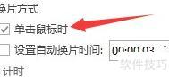 取消自动换片时间设置,在切换菜单右侧的换片方式中选择点击鼠标换片。