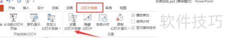 修改完成后,转至幻灯片放映选项卡,点击其中的设置幻灯片放映功能。