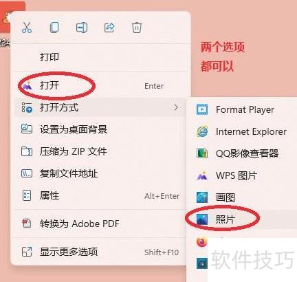 右键点击图片,可选择用WPS相册或系统自带的照片程序打开,推荐使用照片应用;若无相关程序,也可通过浏览器查看。