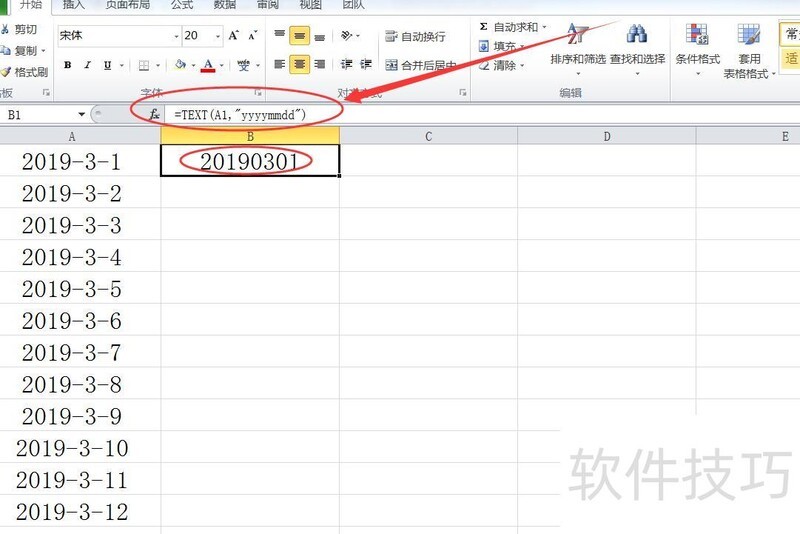 继续输入公式yyyymmdd,然后按回车键,完成公式=text(A1,yyyymmdd)的录入。(注意所有符号均需在英文状态下输入)