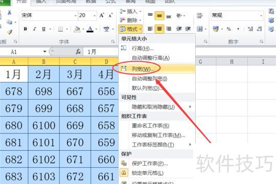 同上操作,从格式下拉菜单中选择列宽,打开列宽设置对话框。