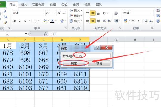弹出编辑框后输入行高值,点击确定即可完成设置。