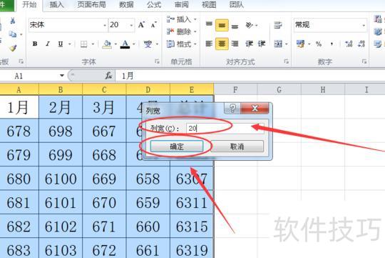 在列宽设置框中输入合适数值,点击确定按钮完成设置。