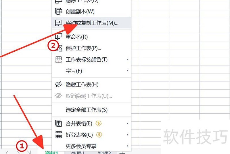 右键点击工作表,选择移动或复制工作表选项。