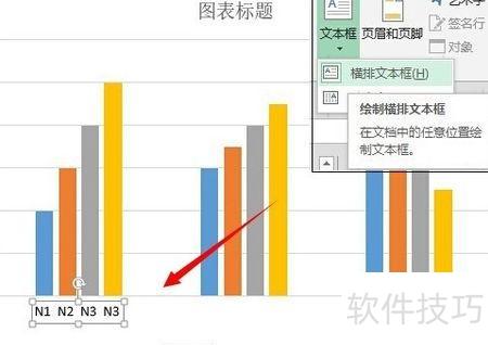 5. 选择插入 - 文本框 - 横排文本框,在图表横坐标下方添加文本框,并输入N1至N4,可将N1到N4内容填入同一文本框内。