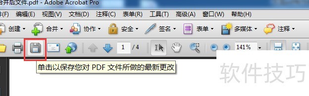 为合并后的文件命名并选择保存路径,点击保存,文件将自动在Acrobat中打开。