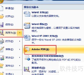 编辑并保存好投标文件Word文档,点击Office按钮,将鼠标悬停在另存为上,选择Adobe PDF格式进行保存。