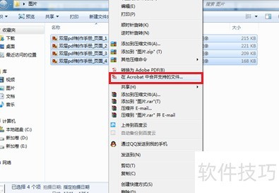 选中所有图片,右键选择在Acrobat中合并支持的文件即可。