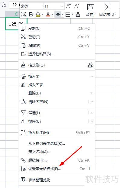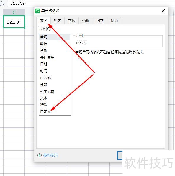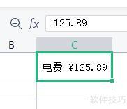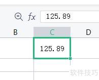 在单元格C1中输入数值125.89。